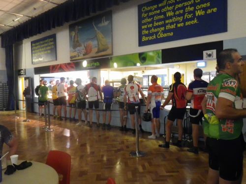 トイレ済まし、バイクチェックして、食堂の列に並びました。