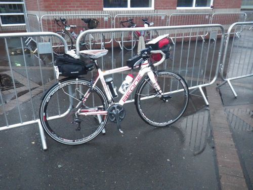 一体いつの時代の自転車だろう。ゼッケンついているので、これでエントリーしているんだよね。