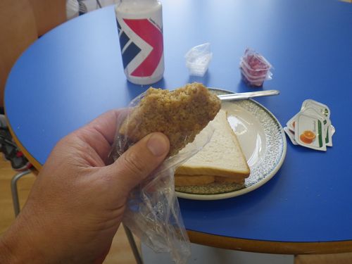 食べなきゃ走れないので、むりやりクッキーらしきものを食べる。