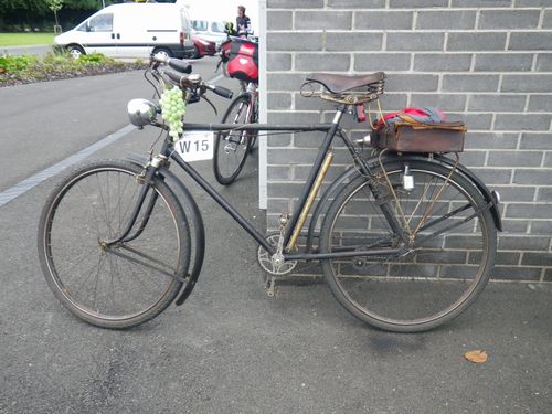 オレの自転車のそばに、こんなビンテージ自転車が・・・これはすごすぎ。