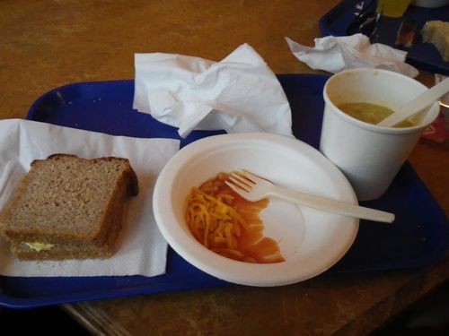 朝はいまいち食べる気がおきません。スープとバナナで朝食。