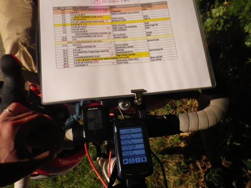 暗闇なのでヘルメットライトを搭載していないオレはキューシート、サイコンの距離計をチェックすることができません。