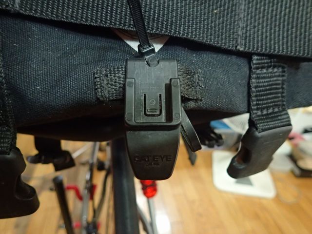 サドルバッグを取り付けることが多いので、こいつは前述のクリップを利用してサドルバッグに取り付けよう。