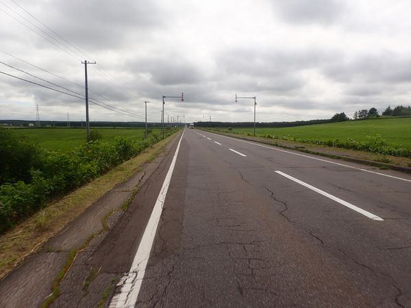 ふたたびリスタート。長い直線が北海道的だけど、まっすぐな直線は必ずしも平たんではないんだよ。