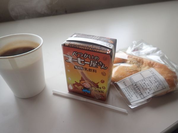 別海のパンとべっかいのコーヒー屋さんコーヒー牛乳。それに砂糖多めのコーヒーで一休み。