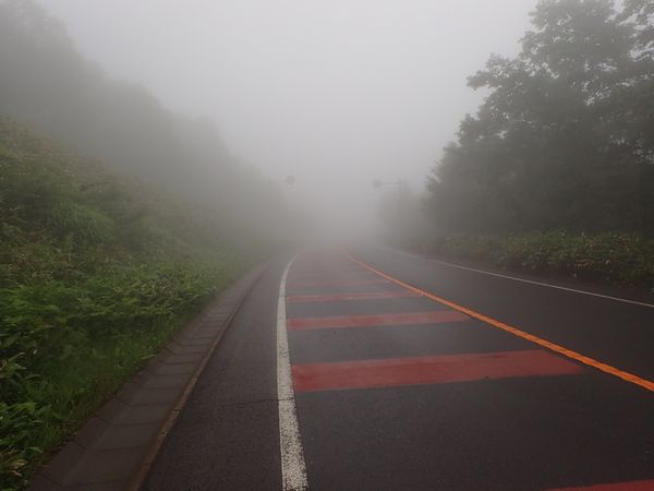 はい、美幌峠真っ白。寄ることもなくダウンヒル突入。