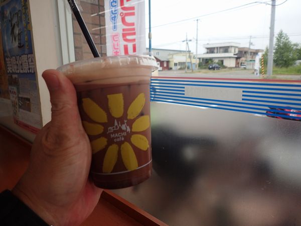 美幌のローソンでコーヒータイム。時計を見ると朝8時。