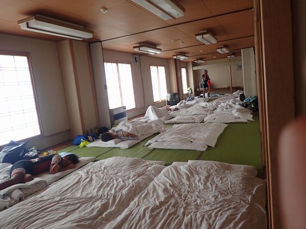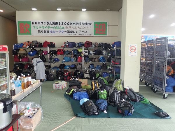 すぐにドロップバッグ取りだし、新しい今晩用のウェア、バッテリー類、アイマスク、洗面セットなどをサドルバッグに放り込む。