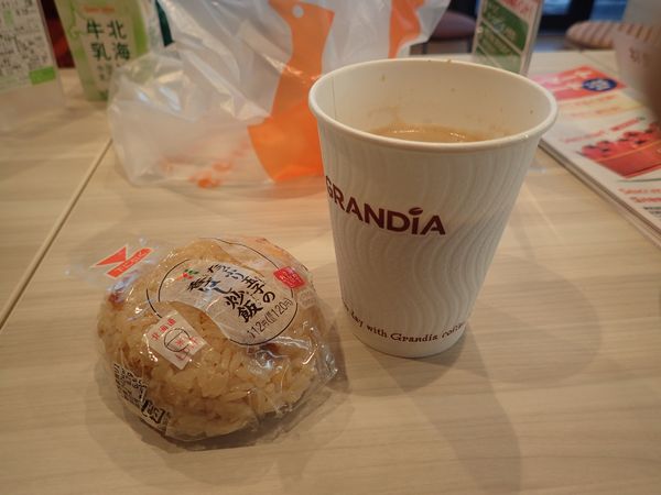 コーヒーを買って、ポケットに残っているおにぎりをほおばる。