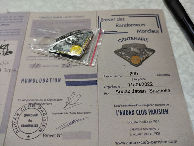 去年受援になった9月11日のAJ静岡さんの掛川200km100周年記念を長女と一緒に無事完走できました。えらい向かい風で四苦八苦しました。