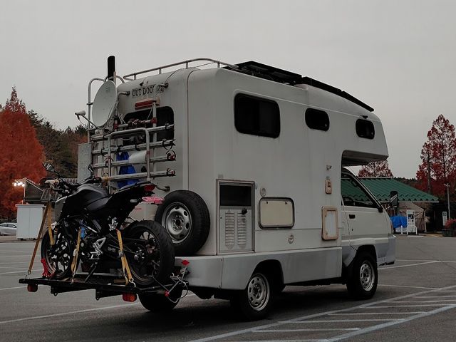 12月1週目のAJ福岡忘年会を目指してキャンカーにバイクのせて・・陸路九州へ向かう。