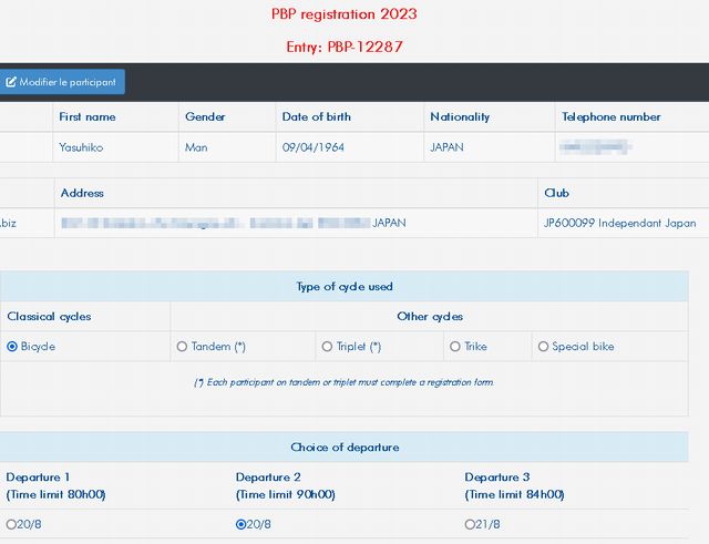 このようにしてPBPパリ・ブレスト・パリの本登録が完了をさせる。本登録の期限は7月2日のはず。