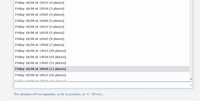 6月18日の時点で時間別スタートの残り席はこのような感じでした。早い時間はすべてソールドアウト。スタート時間を選択する。