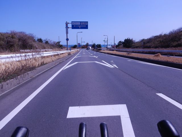 海に向かって走る。まだ向かい風基調。