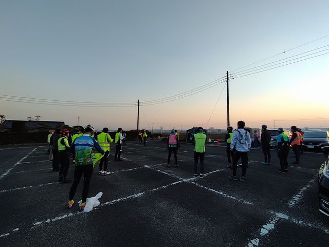 受付5時からスタート。城の湯さんの第二駐車場を貸し切り。車を1台あけて駐車できるという配慮、とてもうれしい。でも寒い・・・