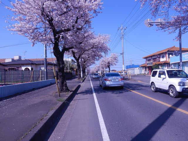 茨城空港へ向かう。桜がきれい。でも・・・マジで向かい風辛い。南風?東風?茨城空港行けば方向変わるから少しマシになるか・・・