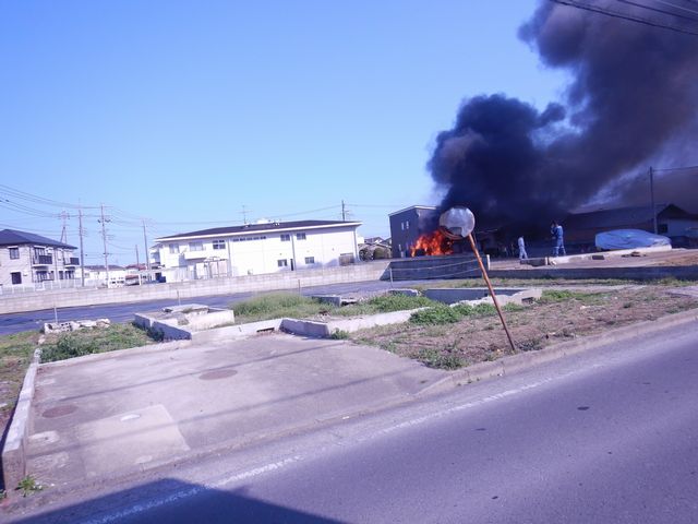 水戸市街を抜けたらえらい煙が・・・火事だ。先の交差点で消防車が来た。火事もそうだし、この後通行止めにならなかったかかなり心配。
