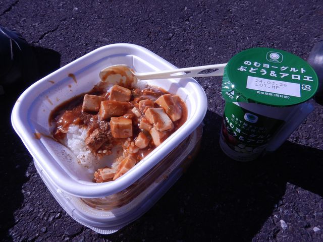 ちょっと腹減った。麻婆丼で気合を入れたいところだが・・・あと60kmある現実にけっこうきつい。