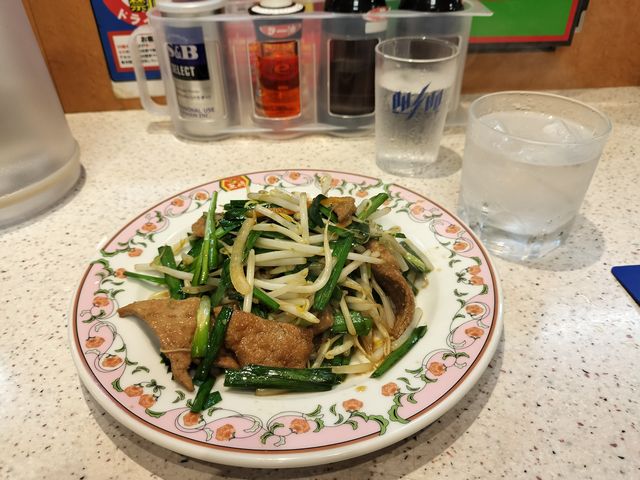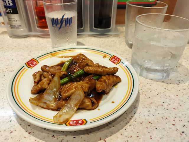 ホルモン炒めの小さいやつ。王将はジャストサイズメニューという小ぶりのお皿も充実している。うまい。
