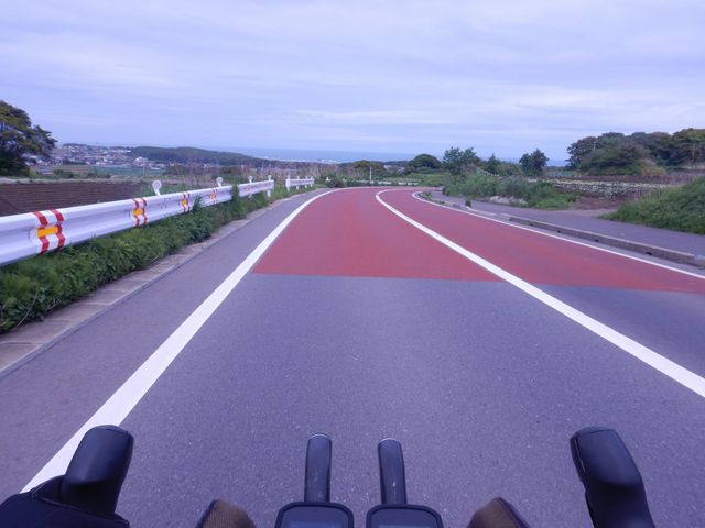 九十九里町。やっとこ信号も少なくなってきた。太平洋に出ればある程度快適に走れるはず。風向きはあまり良くないけど、犬吠埼で向きが変わると追い風基調になるはず。
