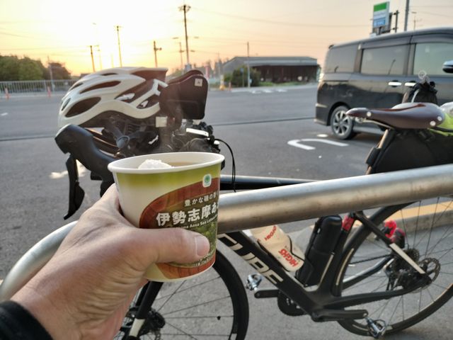1時間ほど走って太陽が出てきたところで、ちょい休憩。