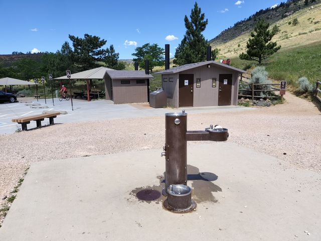 でトイレ行ってみると、上記画像のように水道があった。まじで助かった。時計を見ると14時過ぎ。ショップのあるラスティックまではあと1時間くらいなので、補給は問題ない。