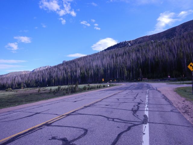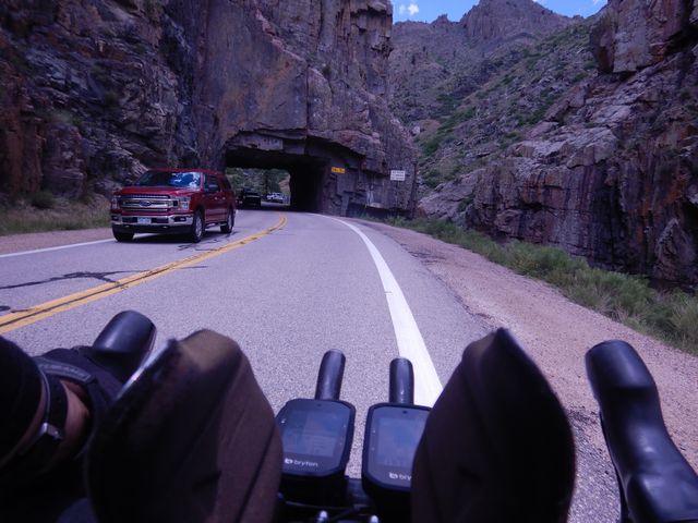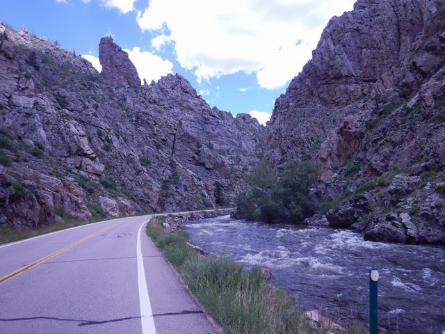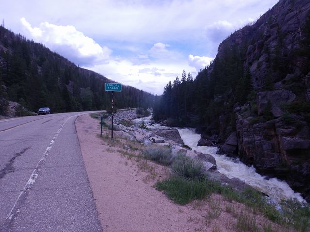 今日のハイライトといえば、このPoudre Canyon沿いを登りキャメロンパスまでの残り120km。コレをクリアすれば仮眠所Waldenまで下り基調の50kmで終了だ。