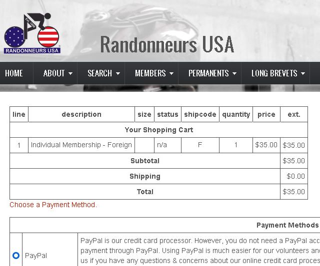 去年6月にコロラド行った時にRandonneurs USA 登録はしておいたのだけど・・・登録日から1年有効ではなくて、その年の12/31で切れてしまうようだ。