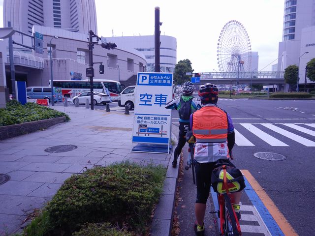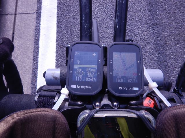 実は2日目に左右1回ずつ立ち転けしている。1回目はGPS見ていて赤信号を侵入しそうになりフルブレーキングで止まれたけどクリート外しそこねて左に転ぶ。