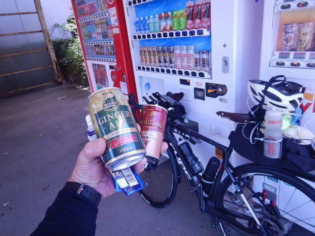 なんか調子がいいのか悪いのかよくわからん。自販機休憩。コンビニ寄ると時間がかかるので、自販機休憩は悪くない。