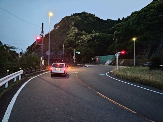 なんとかまだ真っ暗にならない時間帯に国道42号線に戻ることができた。時計を見ると18時50分。新宮のホテルまで約26km・・・20時半前に到着をしたい。