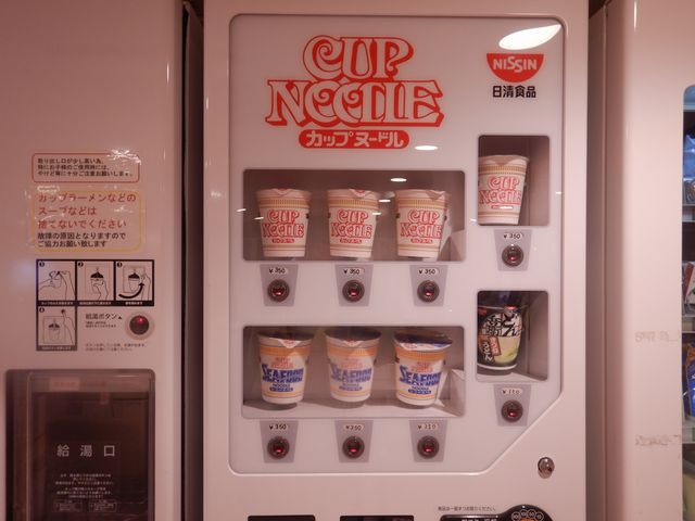 気温が低いとみんな考えることは一緒。カップヌードル自販機はすぐにソールドアウト。
