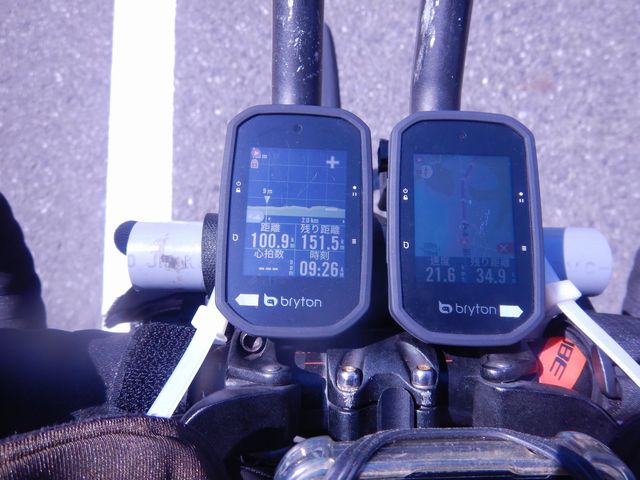 今日の100km到達。5時間半ほどたっている。やっぱりグロス20を保つのはキビい。