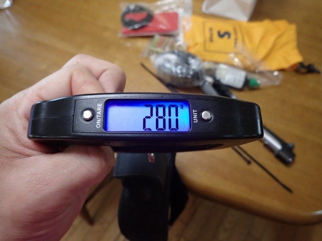 トピークミッドローダー単体で測ってみると280gであった。カタログ重量よりも若干重い。