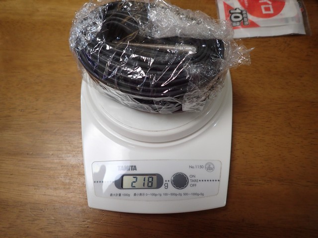 シュワルベの28cまで対応するチューブ。60mmのロングバルブ。ラップして保護している。ちなみにツールボトルにも2本あるので、4本持っていた。