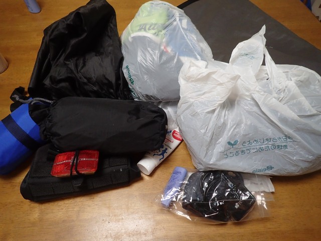 パンツを長パンではなく短パンにしてレッグウォーマーを併用すれば、かなり重量を落とせる。そもそも2日分ではなく1日分でやりくりすれば、相当軽量化できるな。