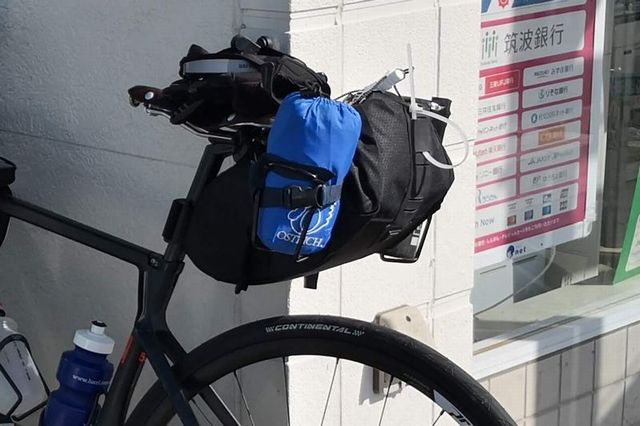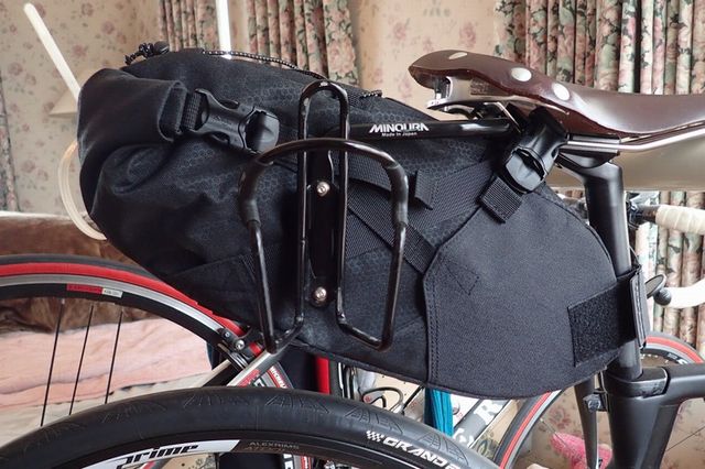 シートバッグスタビライザーあるとボトルケージが4つになるのがとにかくいい。ドリンクボトル2本、ツールボトル、残りの1つにレインウェアと輪行袋を縛り付けている。