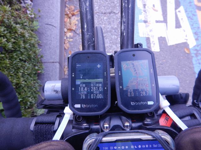 ブライトン2台装備。旅の道標。これがないとブルベは始まらない。2台のGPSで走るルートはもちろん、道のアップダウン、走行距離、残り距離、速度、時間などが視線を落とせばすぐに分かる。