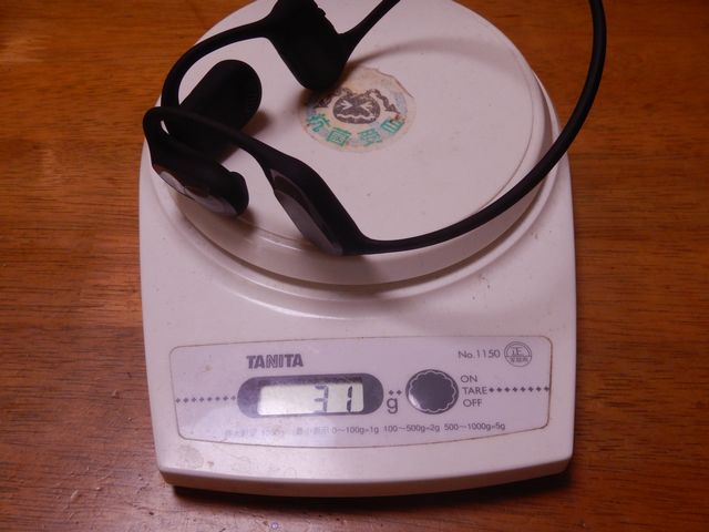 スピーカー部とバッテリー部、コントローラー部があるのでそこそこ重たいかと思ったけど、説明通りの31gはとても軽い。これなら耳への負担もかなり少ないだろう。