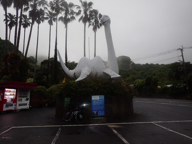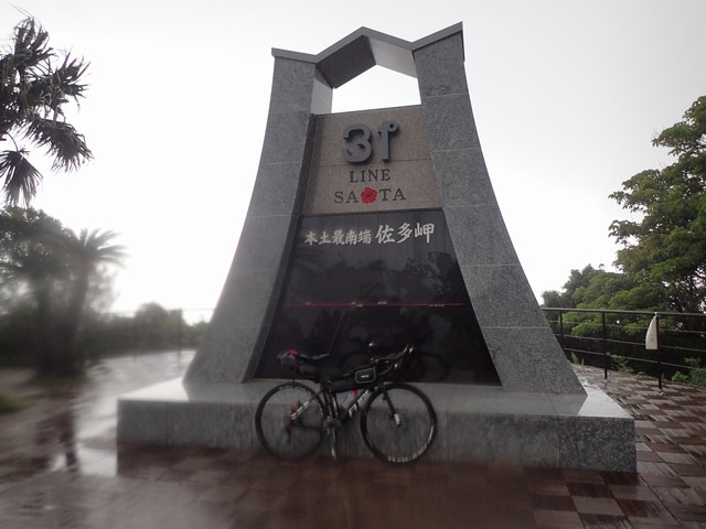 途中のコンビニで休むつもりがボケていたのか素通り。大隅町の自販機で一休みして佐多岬を見ざす。しかし、アップダウンは結構あるし、すごい向かい風だし、大雨だし・・・そろそろ笑えなくなってきた。