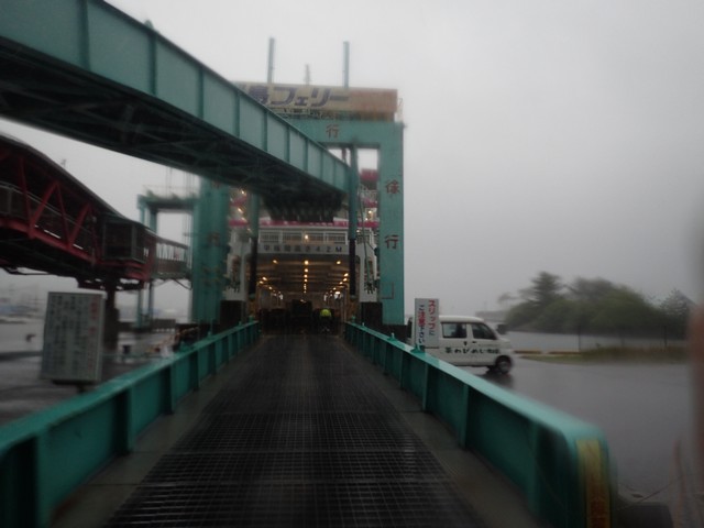 マジで雨ざーざーの桜島フェリー。欠航していなくてよかった。9時のフェリー乗船。