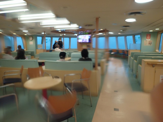 とりあえず60km以上走ってきたのでフェリー内で補給と休憩。
