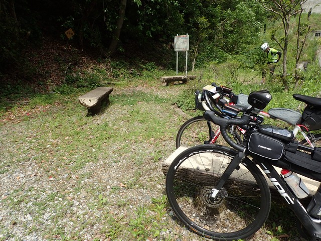 トンネルぬけるとベンチが複数あり、仮眠休憩。直射日光暑かったが、ヘルメットを顔にかぶせ、けっこうスッと寝ることができた。助かった。