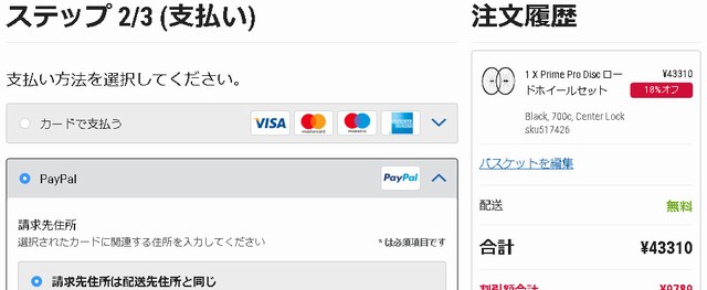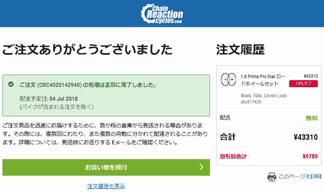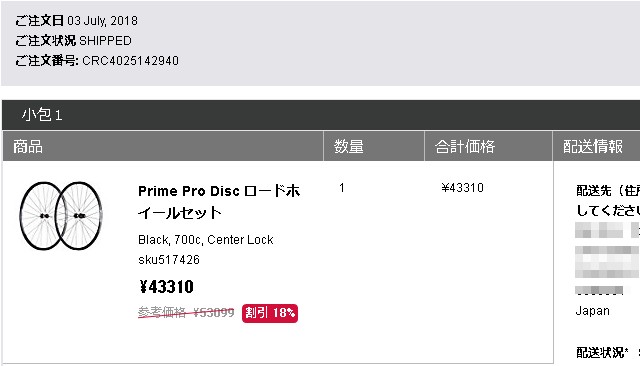 Prime Pro ディスク ロードホイールセット購入を完了した。たぶんウチに到着をするのは来週くらいだろう。