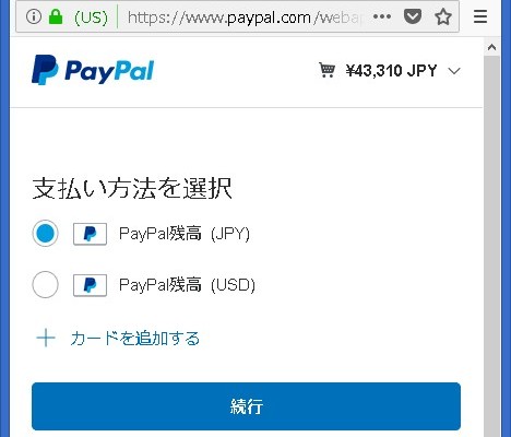 ペイパル支払いを選択。日本円支払いを選ぶ。