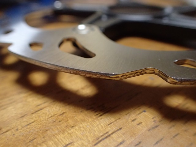 こちらのほうがラジエターフィンが付いていて、ロータが回転している時も積極的な冷却効果があるだろう。フロントブレーキだけ、こちらのフィン付きでもいいかもしれない。