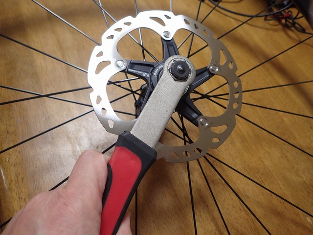 あとはバイクのフレームにホイール装着をして、サイコンマグネット付けて、ディスクプレートとブレーキパッドのクリアランスをチェックして、ホイール換装完了。