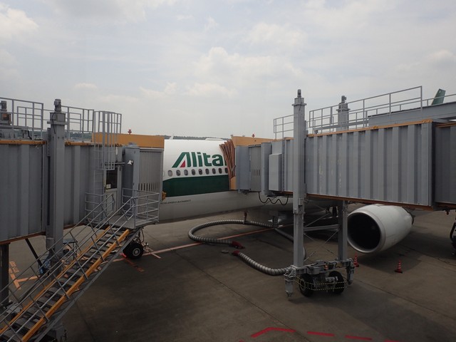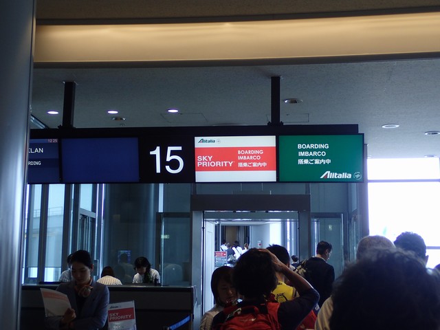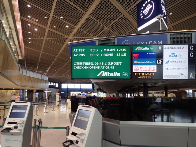 ウチらの乗るミラノ行きアリタリア航空AZ787便は成田発12時35分。
