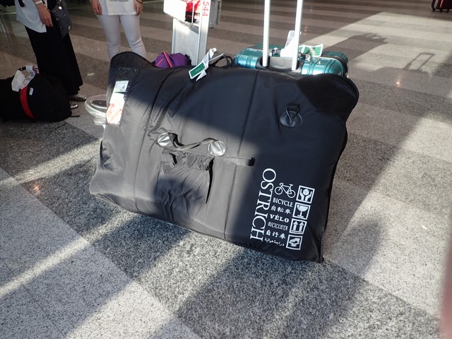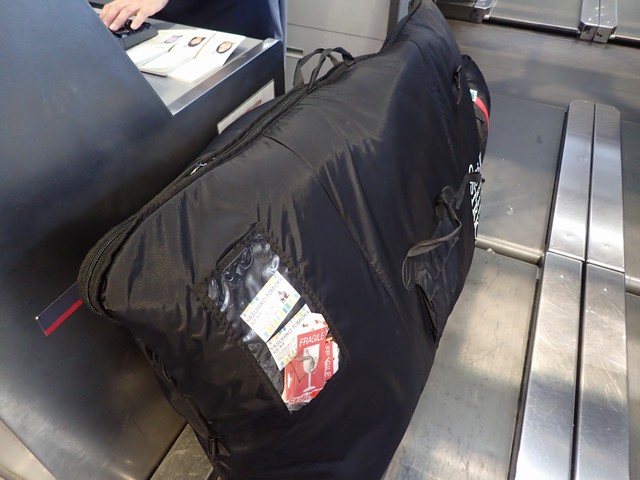 輪行袋は23.5kgで問題なし。荷物の重量は23kgとなっている。1人2つまで。輪行袋による超過料金もない。これはうれしい限りだ。