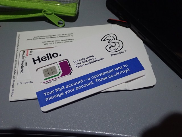 アマゾンで購入をしたthreeのSIMをスマホに入れる。